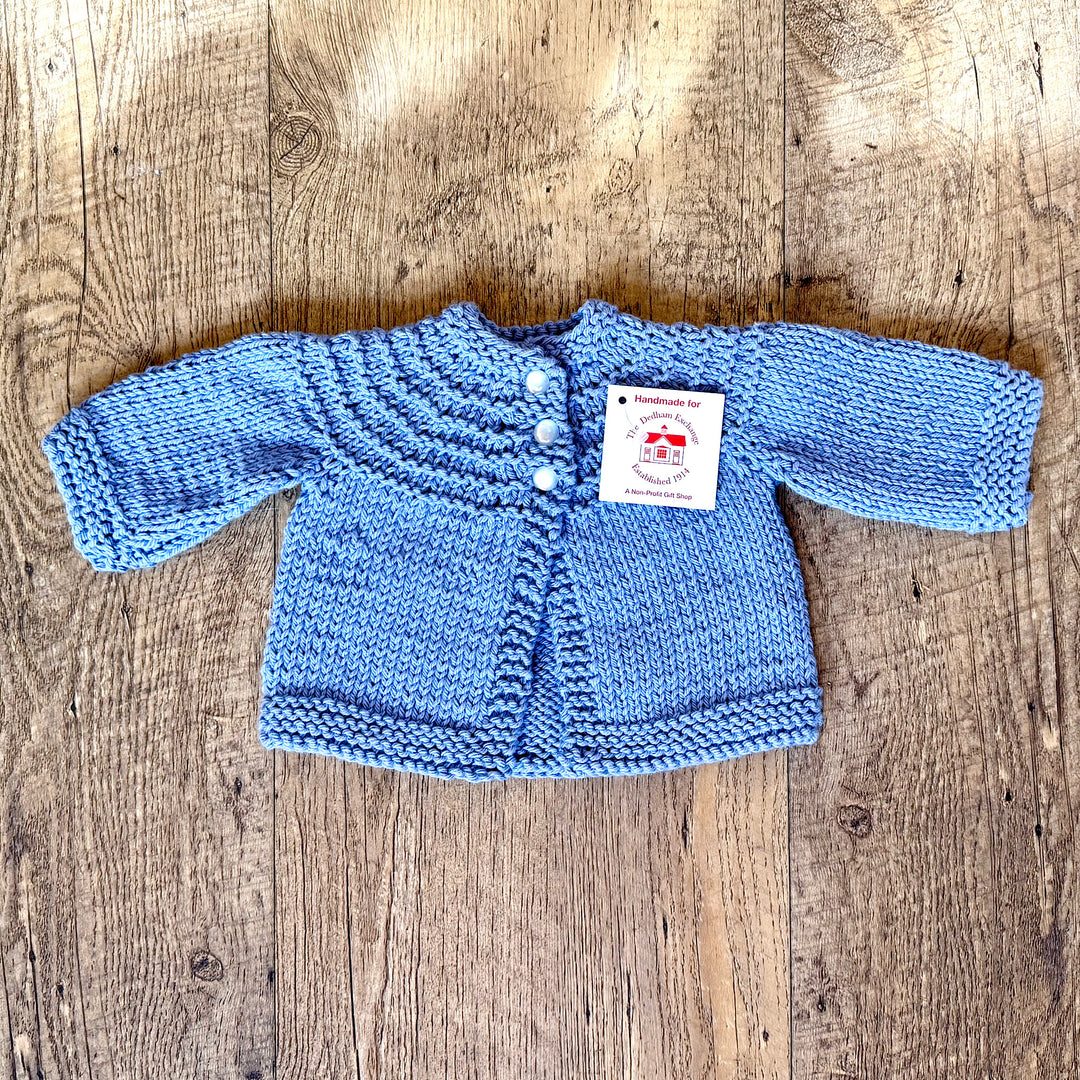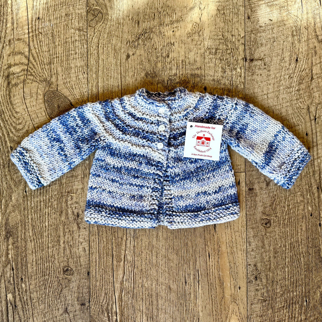 Hand Knit Blue and Gray Cotton Cardigan Sweater