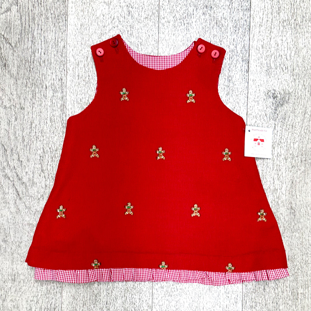 Handmade Red Corduroy Jumper with Gingerbreadmen