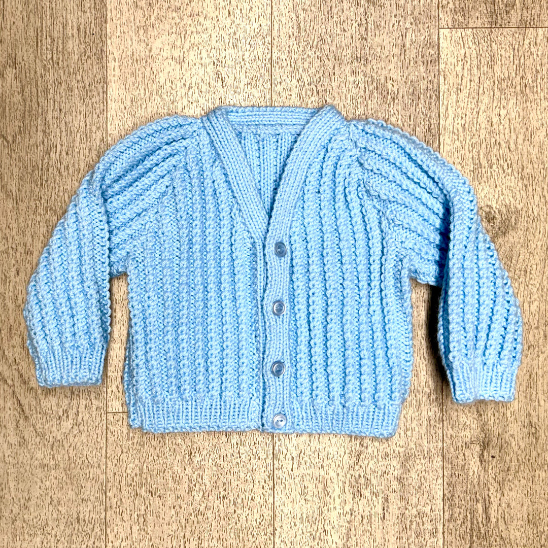Hand Knit Blue and Gray Cotton Cardigan Sweater