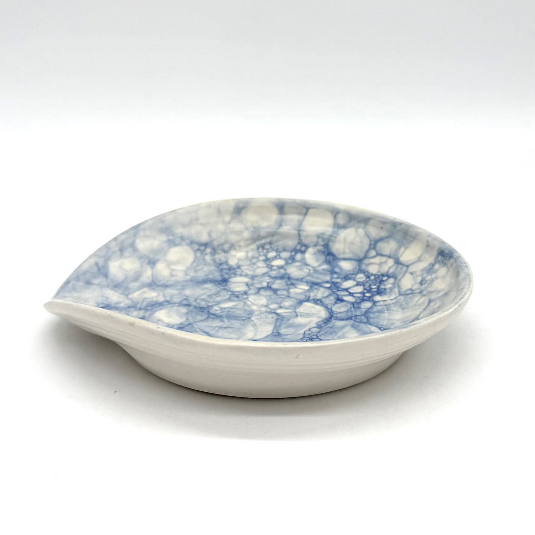 Handmade Speckled Blue and White Ceramic Spoon Rest
