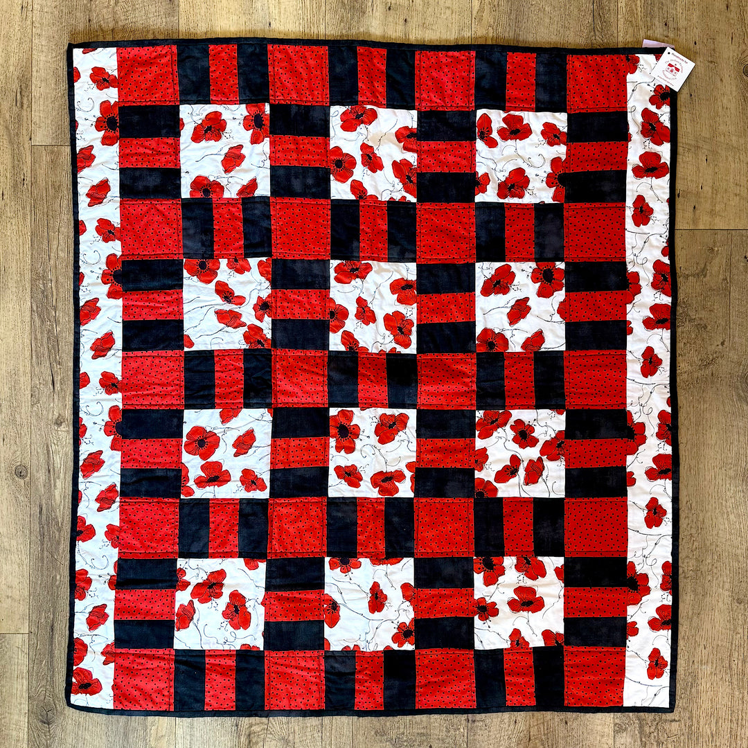 Handmade Red and Black Quilted Throw With Red Poppy Design