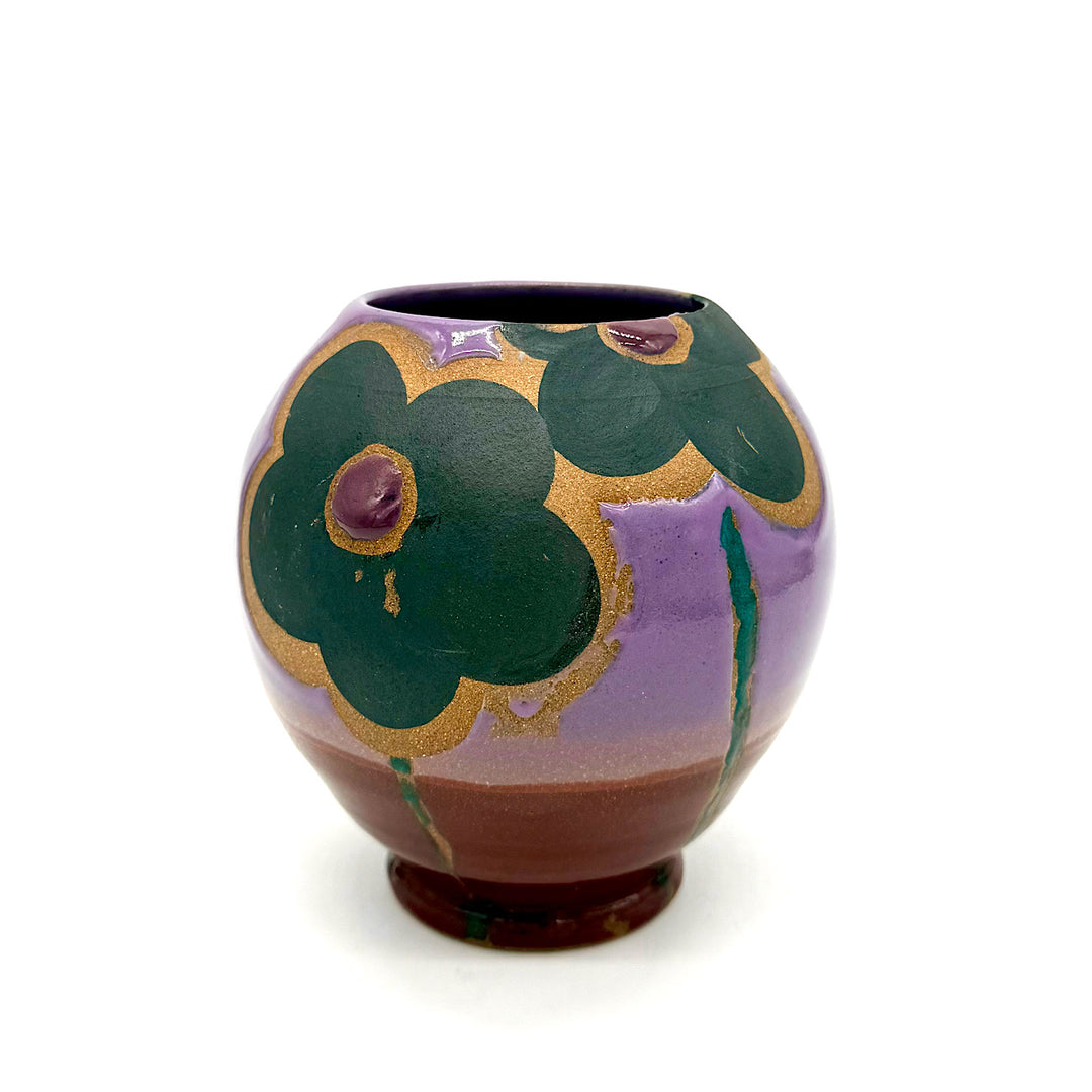 Handmade Small Purple and Dark Red Ceramic Vase With Flower Design