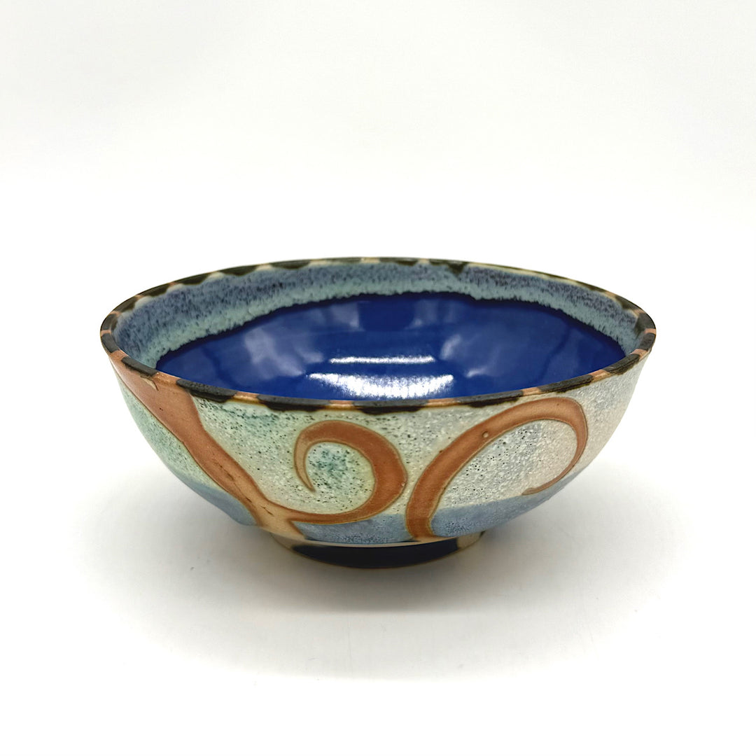 Handmade Small Blue and Aqua Ceramic Bowl with Swirls