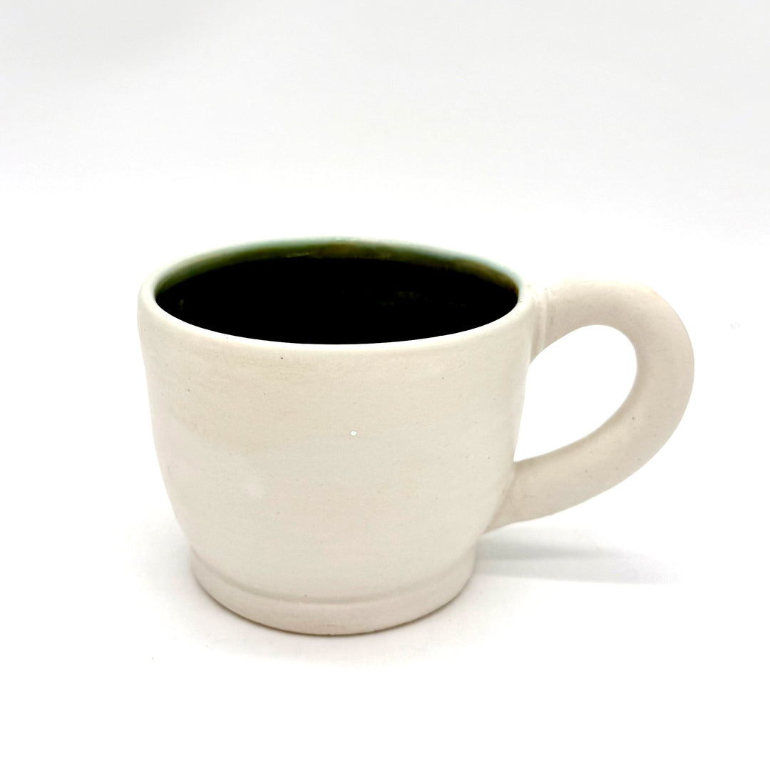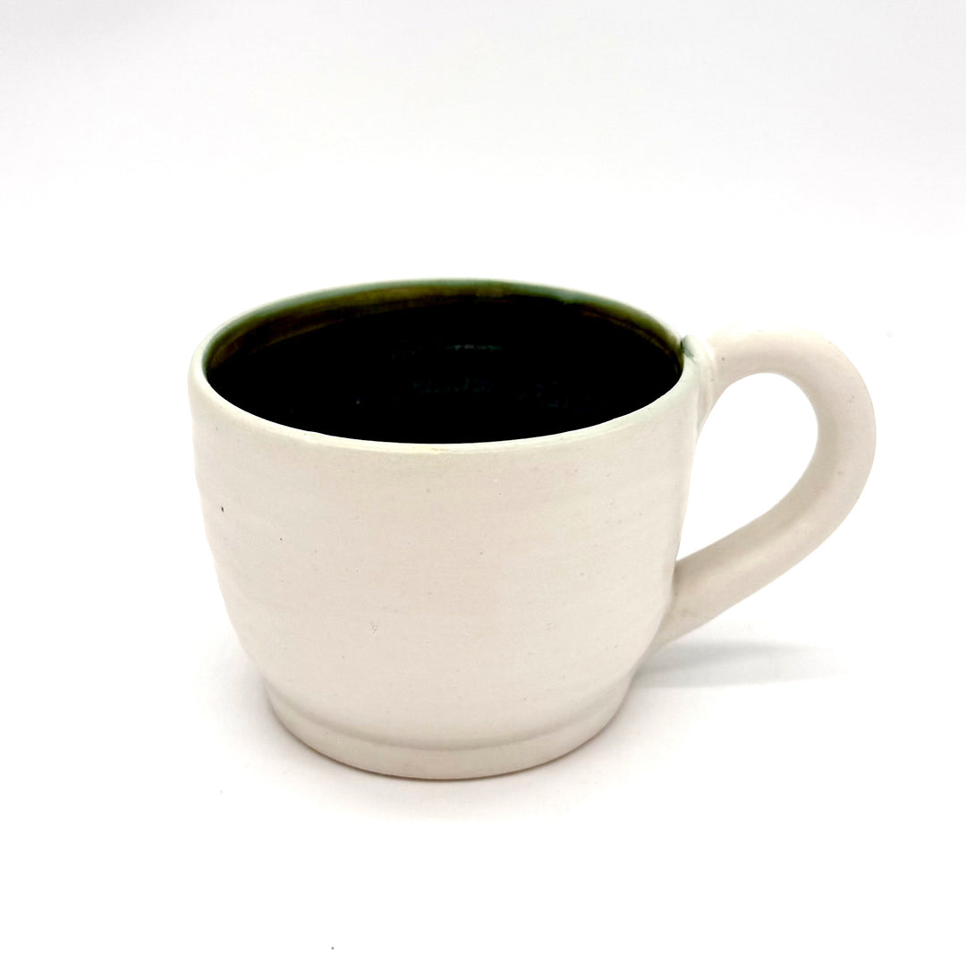 Handmade Ceramic Mug with Off White Exterior and Green Glazed Interior