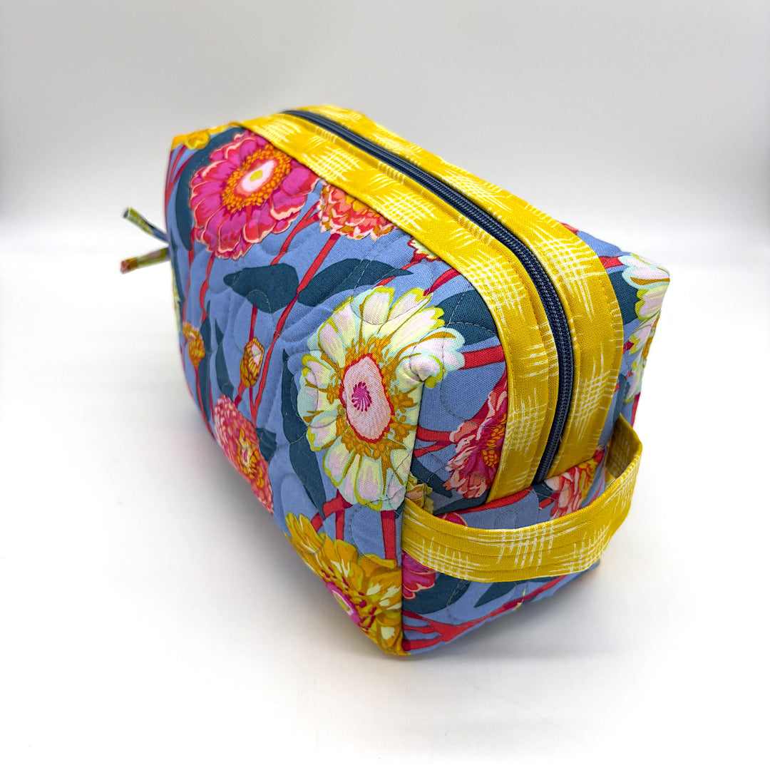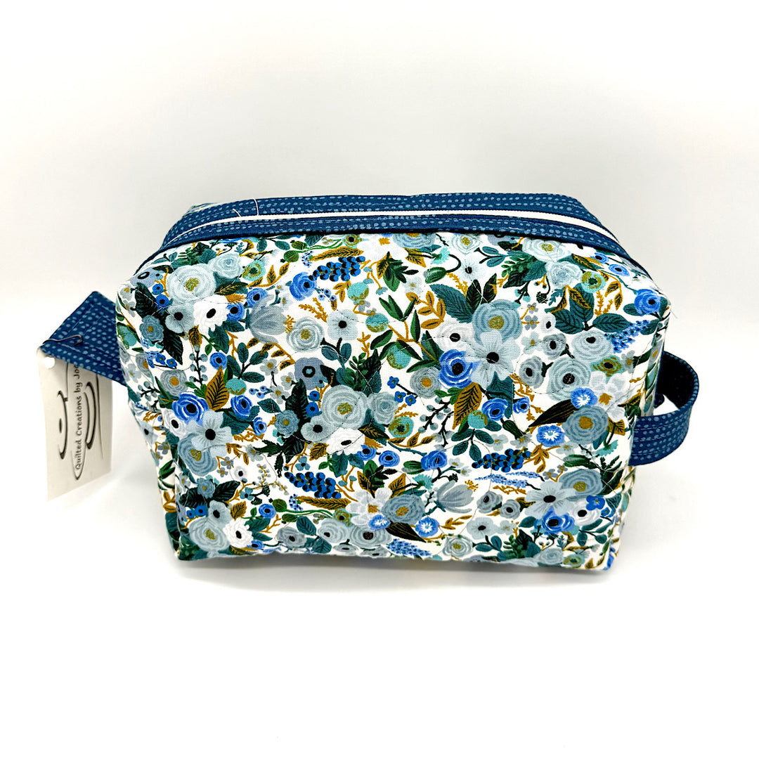 Handmade Quilted Large Blue Floral Cosmetic Bag