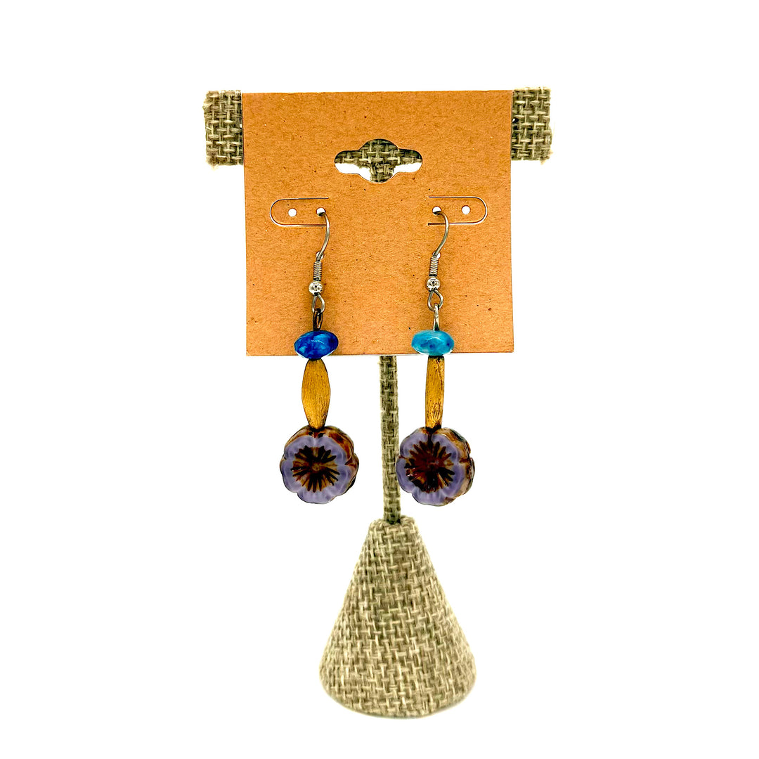 Handcrafted Drop Earrings With Lavender Flower Beads