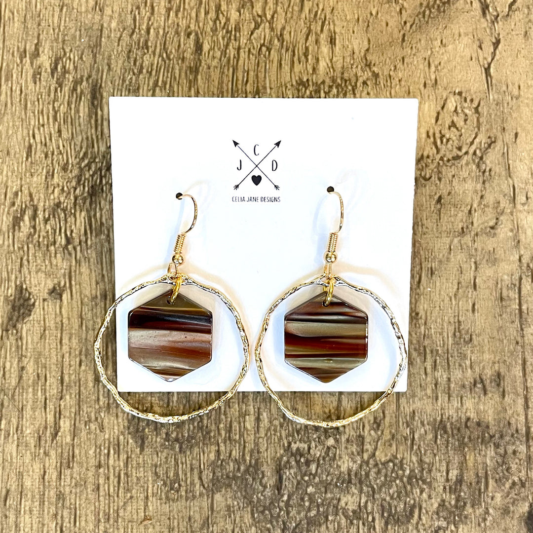 Handcrafted Goldtone/Hexagon Hoop Drop Earrings