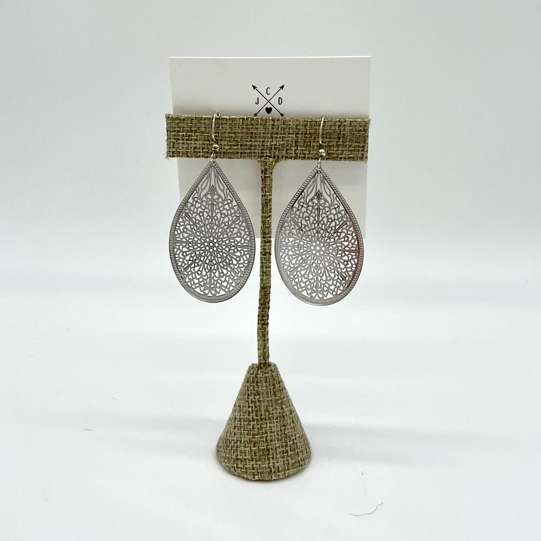 Handcrafted Silvertone Lace Drop Earrings